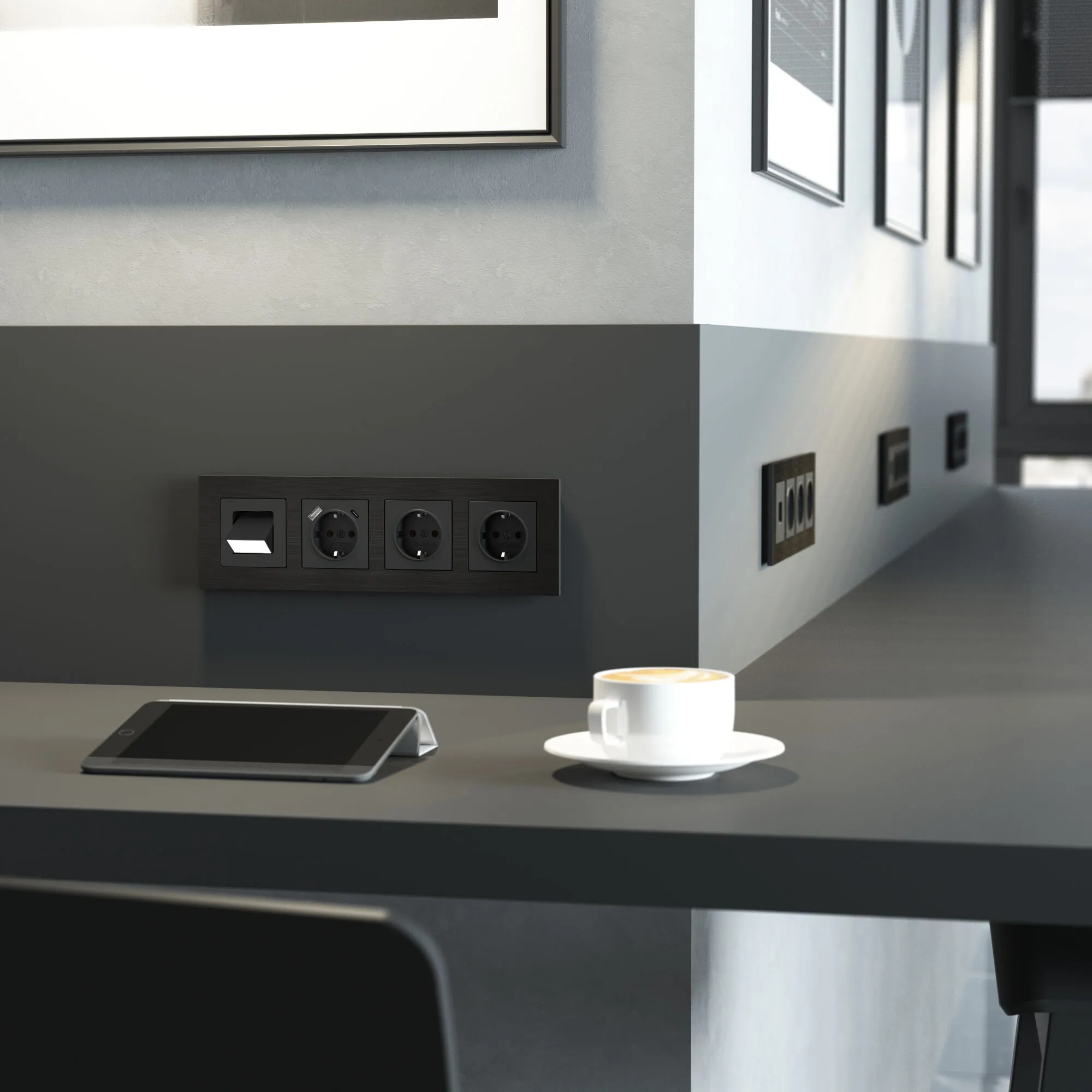 Рамка на 4 поста AluMax (черный алюминий) W0043508