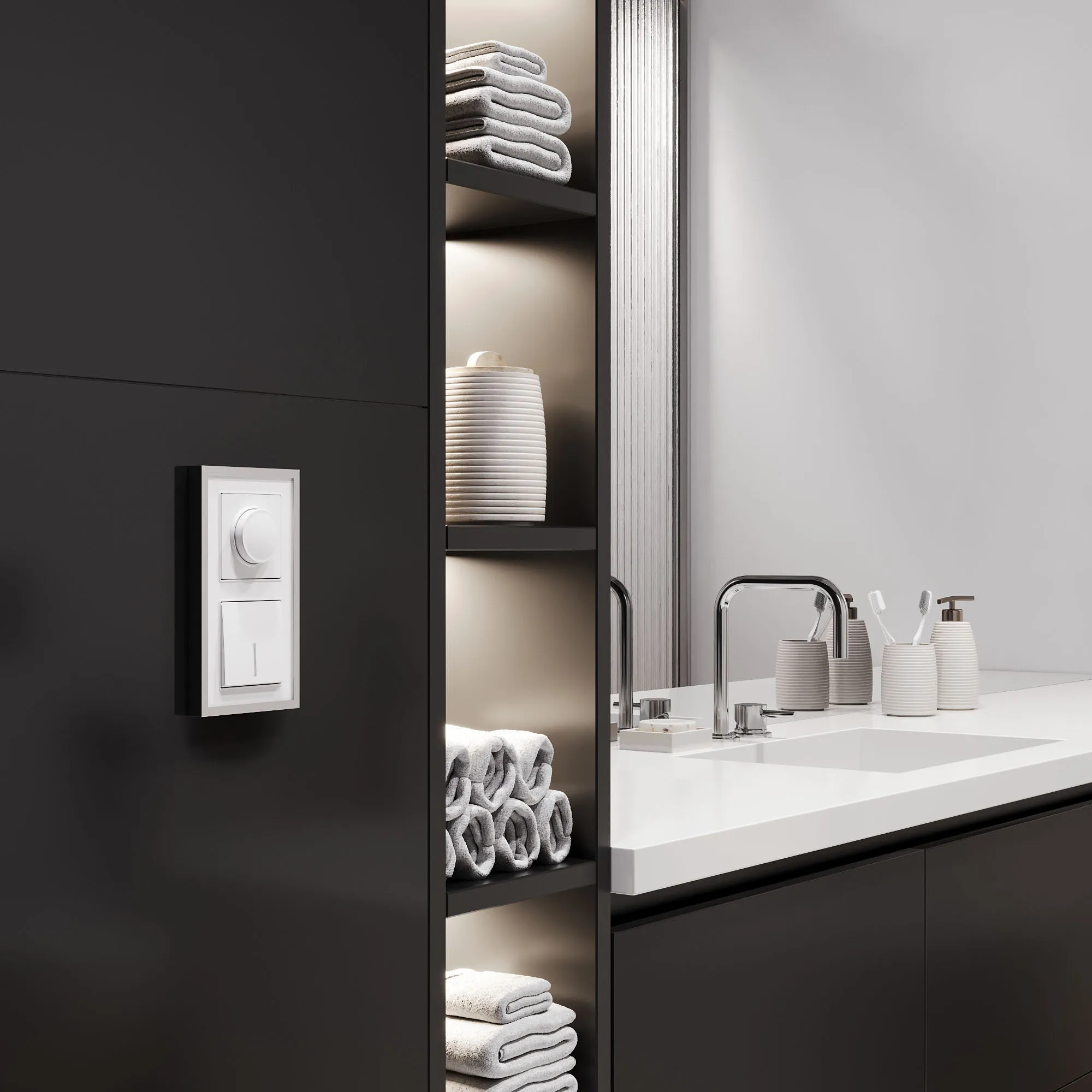 🔹 Подсветка белого цвета — мягко светится в темноте, помогает ориентироваться без включения основного освещения. Особенно удобна в ночное время и в помещениях без окон.