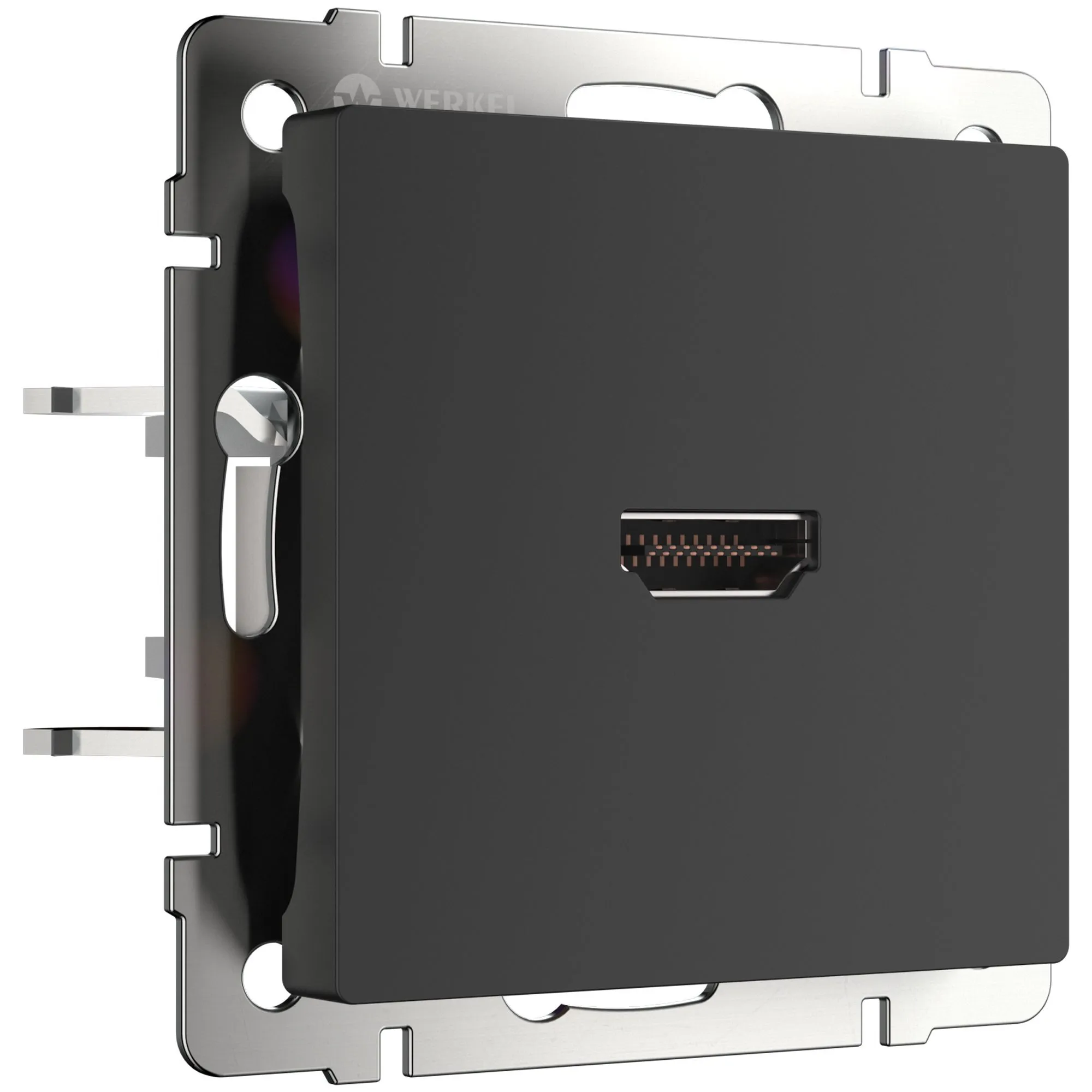 Механизм с основой из нержавеющей стали монтируется в монтажной коробке и надежно закрепляется с помощью винтов и крепежных лапок. Внешняя панель изготавливается из прочного поликарбоната, устойчивого к ударам и высоким температурам. Розетка HDMI совместима со всеми рамками из каталога Werkel, что дает возможность создать уникальные дизайнерские решения, сочетающиеся по стилю и цвету.