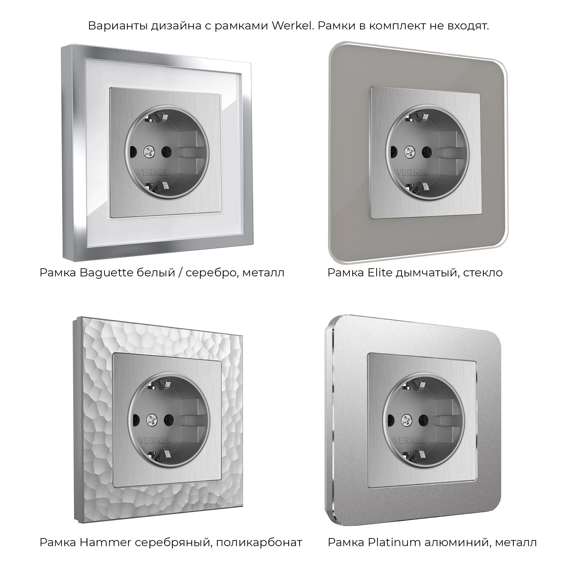 Лицевая панель выполнена в серебряном цвете с рельефной фактурой и тактильной мягкостью. Такая поверхность не бликует, не притягивает пыль и идеально вписывается в любые стили — от скандинавского минимализма до лофта и классики. Гармонично сочетается с любыми отделочными материалами, а универсальная совместимость со всеми рамками Werkel позволяет создавать индивидуальные композиции под ваш вкус.