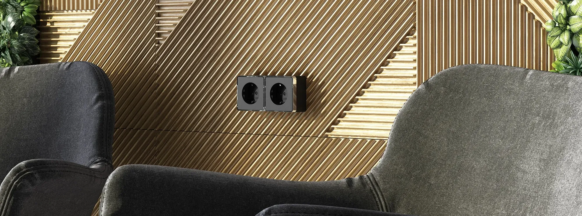 Розетка двойная с заземлением Gallant (черный/хром) W5072135
