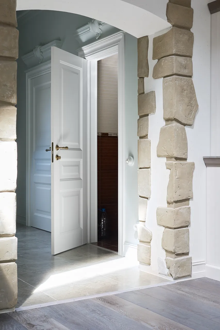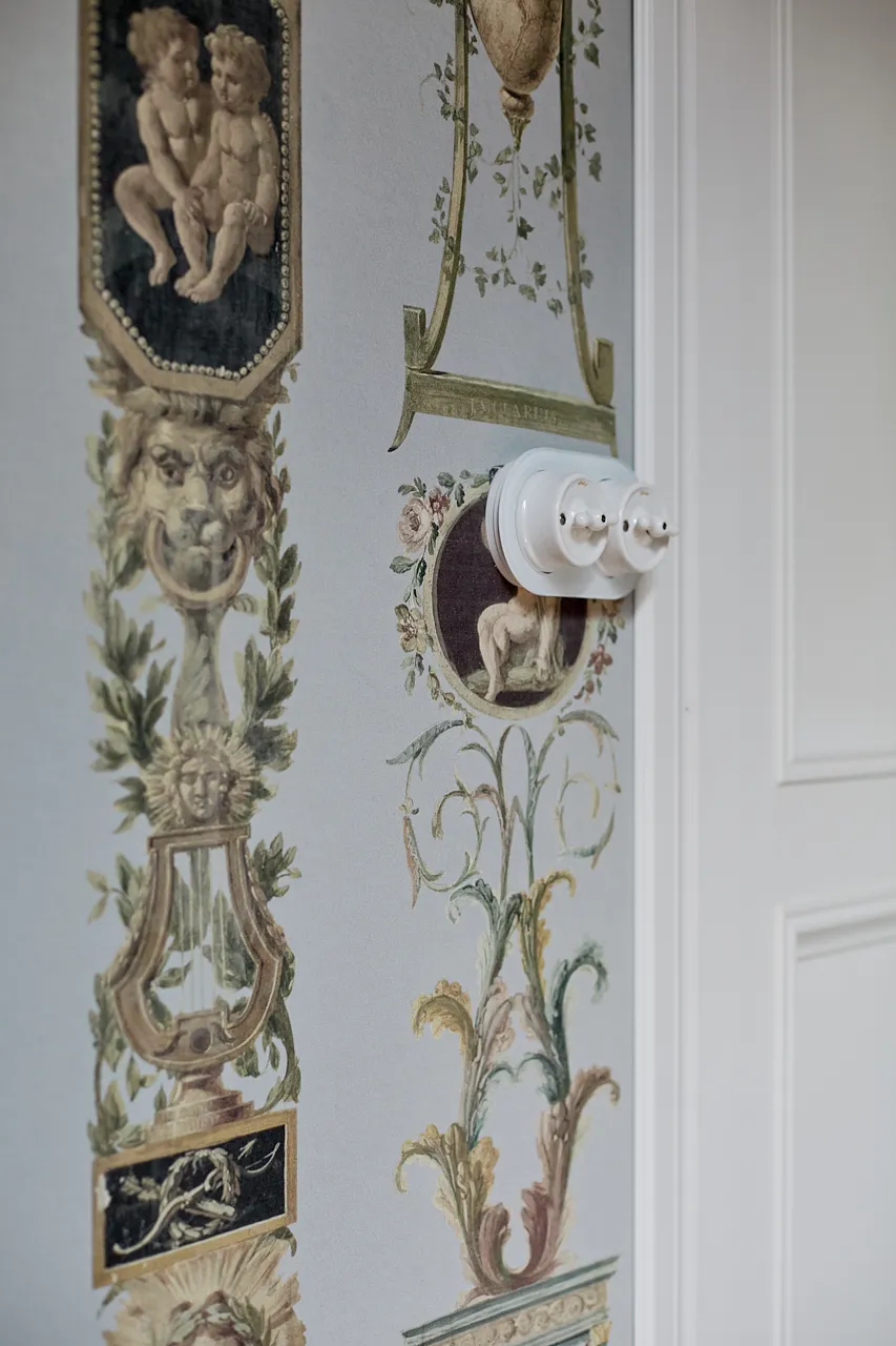 Особое внимание уделили электроустановочным изделиям. В проекте использовались механизмы Werkel, выполненные в стиле ретро. Все изделия имеют прочный керамический корпус, а поворотные выключатели украшают элегантные ручки-барашки. Эти детали стали важной частью интерьера, подчеркивая его исторический характер и добавляя нотку аристократизма.